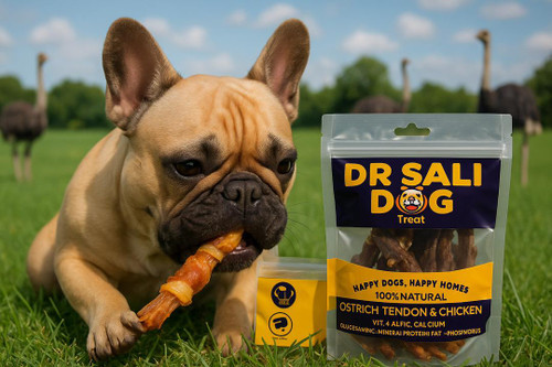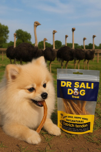 تشویقی سگ تاندون خشک شده ی شتر مرغ دکتر سالی ۱۲۰ گرمی